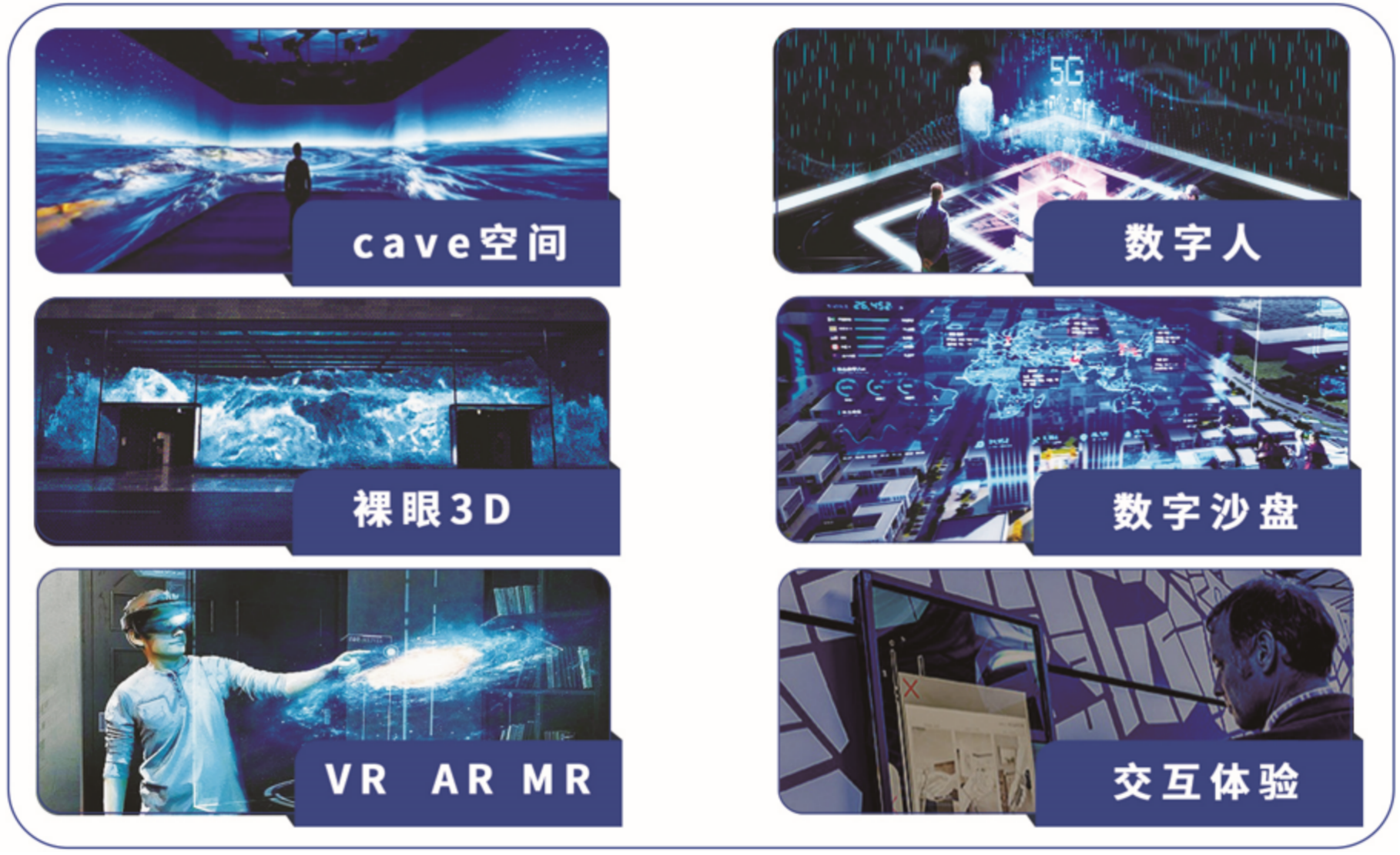 核心产品有:CAVE空间、数字人、裸眼3D、数字沙盘、VR、AR、MR、交互体验等。